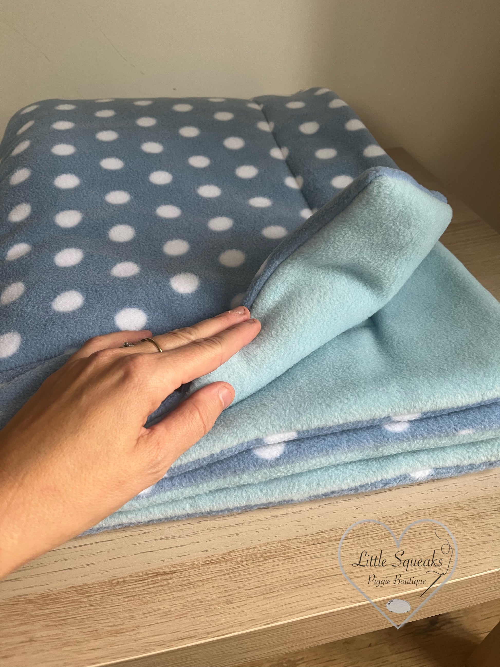 Made from blue spotted fleece on one side and coordinating baby blue fleece on the reverse, these soft and cosy fleece cage liners are sure to look beautiful in any cage set up.