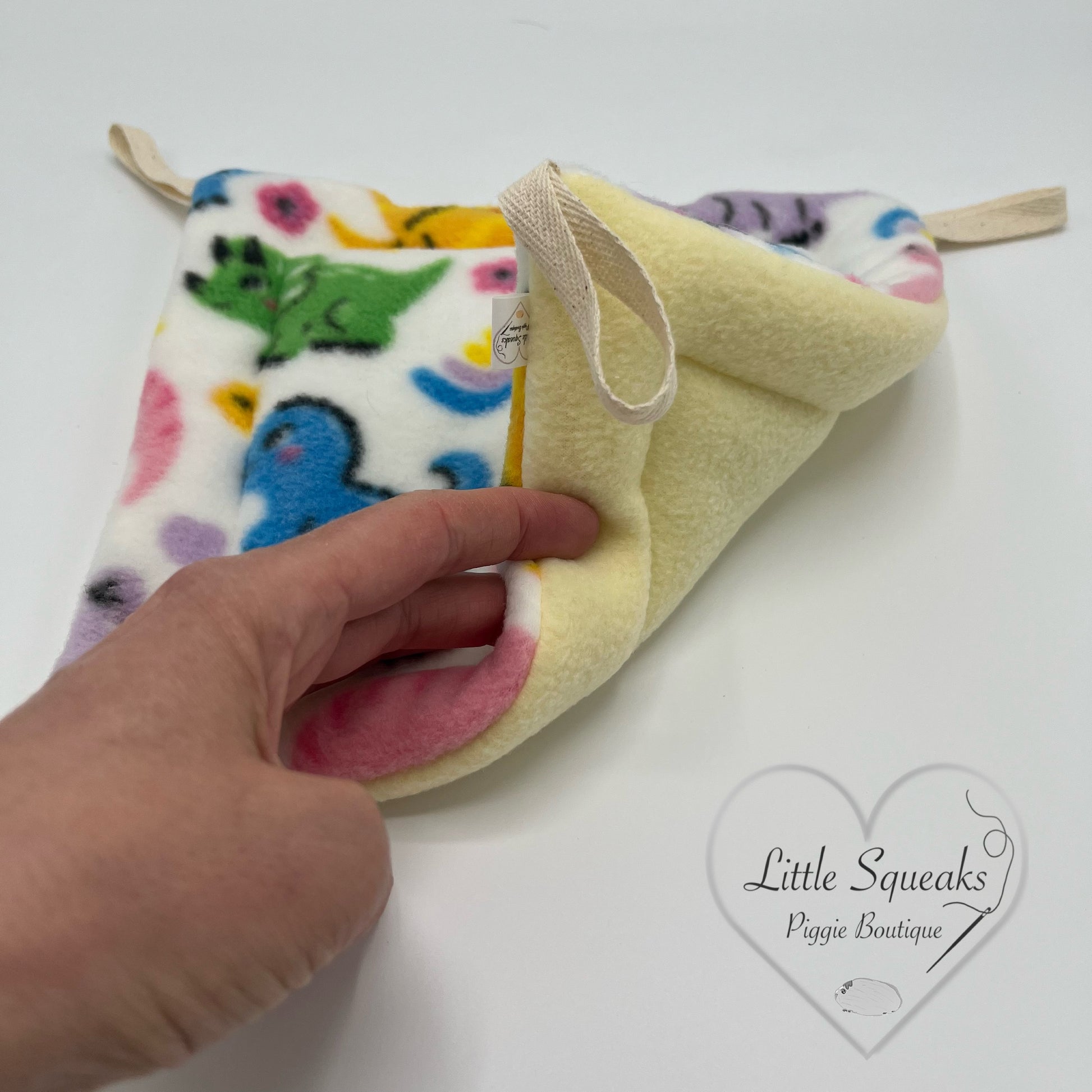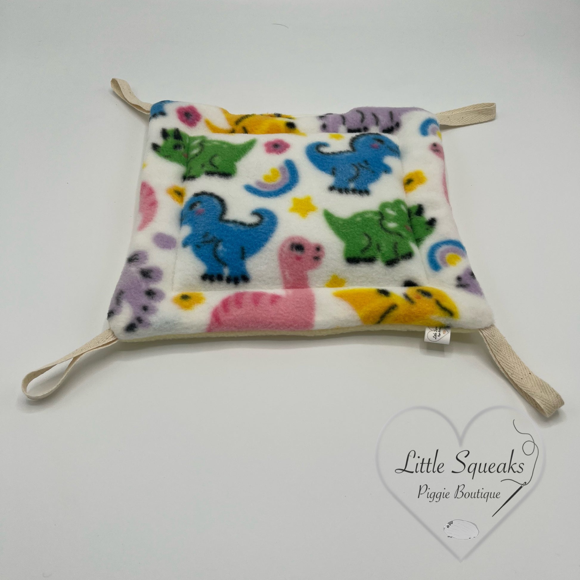 Additional hammock stand pads to fit our Little Squeaks Piggie Boutique Hammock Stands. In reversible cute dinosaur patterned/lemon yellow fleece.